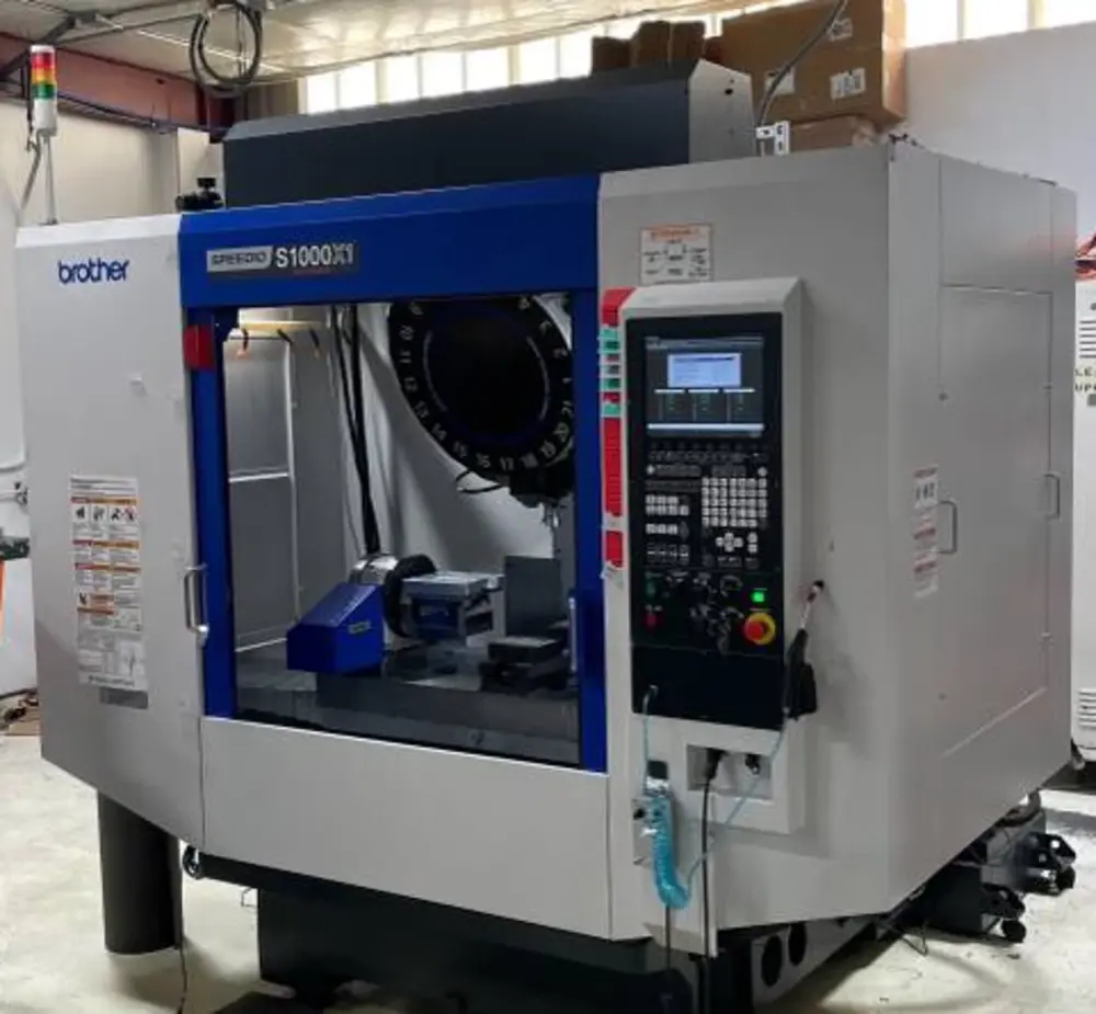 Used drilling & tapping center with 39.4" X, 19.7" Y, 11.8" Z travel, 7.4 hp, 10,000 RPM, and BT30 taper. Features include a 200L coolant tank, 4th axis, spindle probe, tool setter, and more.