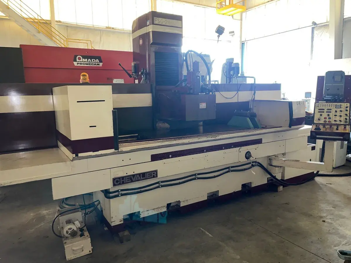Used reciprocating surface grinder, features a 24" x 60" table, 3960 lbs load capacity, and a 15 HP spindle motor. Equipped with electro-magnetic chuck, auto lubrication, and a coolant system.