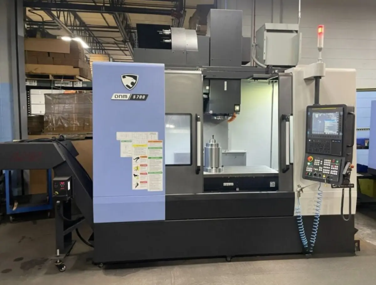 Used vertical machining center, features 4-axis, CAT 40 taper, 12,000 RPM, and a 25 hp motor. Equipped with FANUC i-Series CNC, a Samchully rotary table, Renishaw probing, coolant, and air systems.